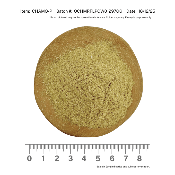 Our organic chamomile powder is a finely milled, fragrant botanical made from premium quality chamomile flowers, capturing their delicate apple-like aroma and soft floral notes. This fine chamomile powder is perfect for manufacturers crafting teas, wellness blends, skincare products, and natural remedies that call for a soothing, natural ingredient.
