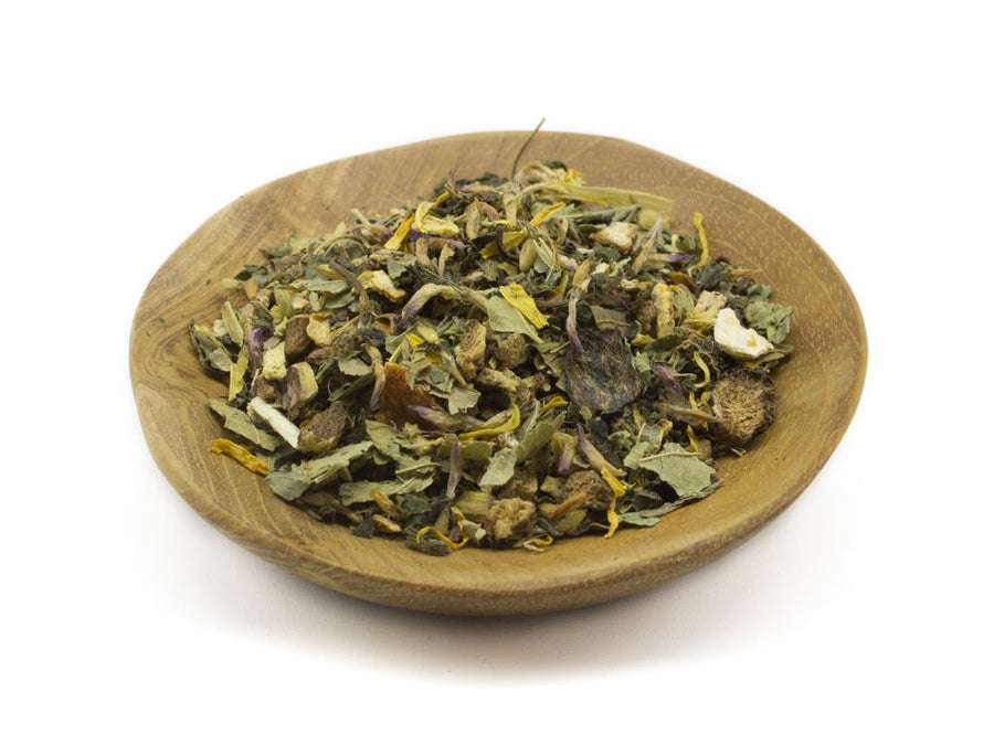 Ingredients: Burdock, Dandelion Root, Licorice, Nettle Leaf, St Mary's Thistle, Lemon Peel, Lemon Verbena, Red Clover, Calendula Petals and Rhubarb Root