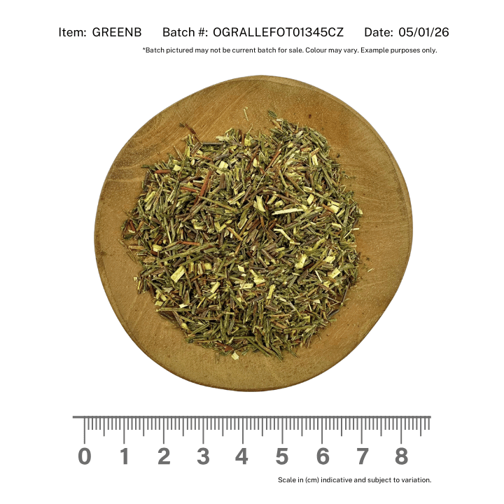 Organic Greenbosch, or Green Rooibos, is a naturally caffeine-free superleaf that's gaining popularity for its potential health benefits and light, refreshing flavour. Unlike traditional Rooibos, which is fermented and oxidized, Green Rooibos is carefully dried without fermentation, which helps preserve its vibrant green colour and fresh, grassy taste. It's often described as a milder, more delicate version of red Rooibos, with a subtle sweetness and less of the earthy notes.
