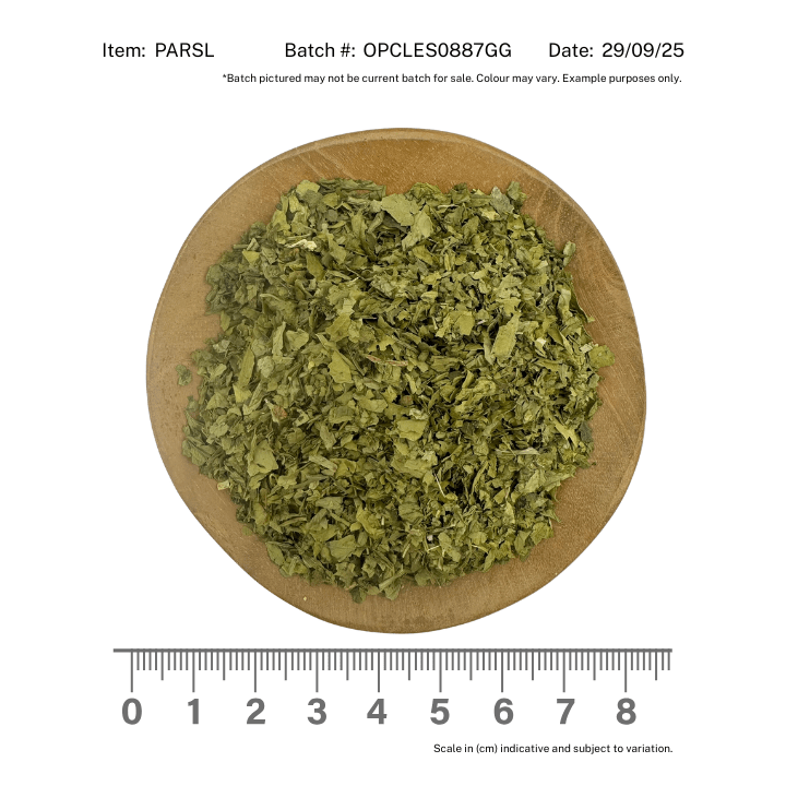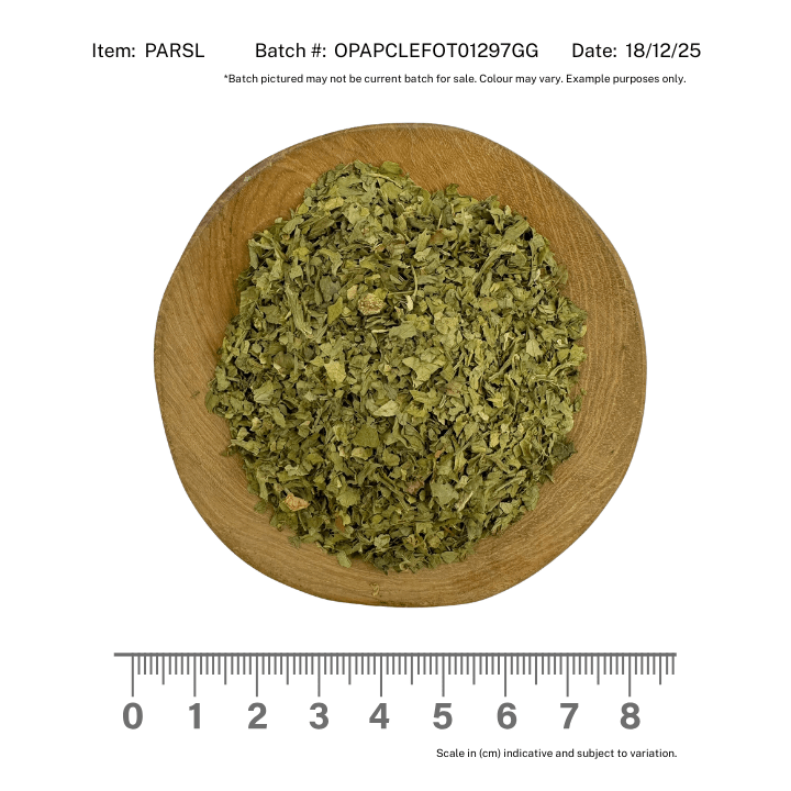 The taste of Organic Parsley Leaf is fresh, slightly peppery, with a hint of earthiness that pairs beautifully with both bold and subtle flavours. It's commonly used in culinary applications like soups, salads, sauces, and marinades, offering both flavour and visual appeal. Historically, Parsley has been a staple in Mediterranean cooking for centuries, valued not only for its taste but also its aromatic qualities.