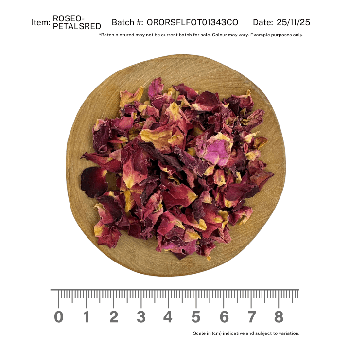 Uses for Red Rose Petals include infusions in beverages like teas and tonics, as well as flavouring agents in gourmet food products. The petals can also be used in wellness formulations such as bath products, cosmetics, and essential oils. Known for their subtle floral flavour, Red Rose Petals impart a mild, slightly sweet, and aromatic taste to culinary creations, enhancing both visual appeal and flavour profiles.