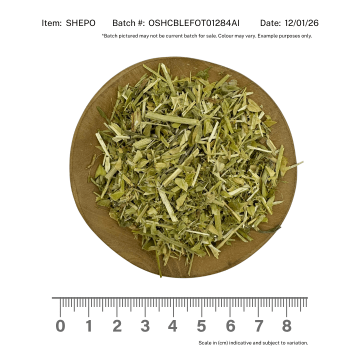 Certified Organic Shepherd's Purse (Capsella bursa-pastoris) might not be the flashiest botanical, but it's certainly one of the most intriguing. With its fresh, herbaceous aroma, mildly peppery taste, and earthy green colour, this finely cut (4-10 mm) leaf has been a favorite in traditional formulations for centuries. Some say it has been used in wellness blends for its natural astringent properties, making it a go-to for herbal infusions, functional foods, and botanical extracts.