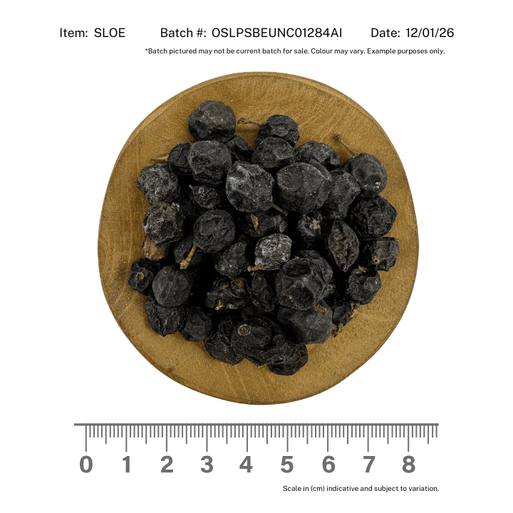 Sloe berries are small, dark purple fruits of the Prunus spinosa plant, often referred to as "blackthorn." These organic berries are hand-picked from the wild, ensuring the highest quality and authenticity.