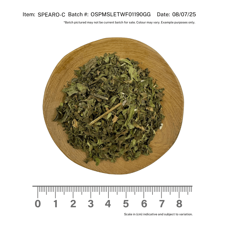 Perfect for a range of food, beverage, and wellness product formulations, our organic spearmint leaf brings a cool, minty flavour that enhances teas, syrups, confections, and more. It's known for offering a crisp and refreshing touch that will elevate your creations.