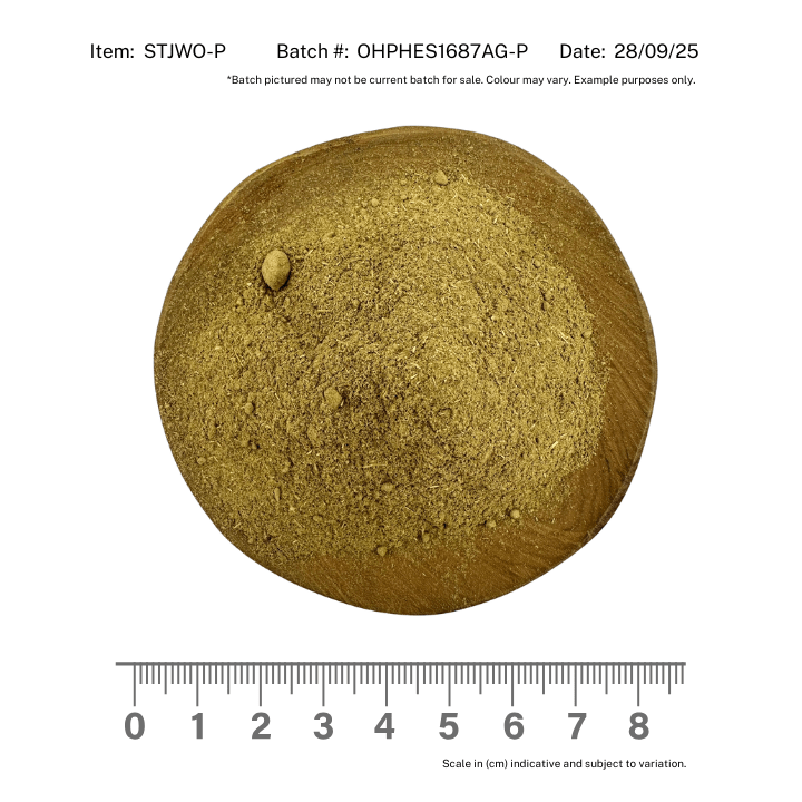 Add a little herbal magic to your formulations with our Certified Organic St. John's Wort Powder! Sourced from the vibrant dried leaves of the Hypericum perforatum plant, this fine powder boasts a natural yellowish-green colour and a mild, earthy taste with a light herbal aroma - perfect for a subtle, yet effective ingredient in wellness, food, and beverage products.