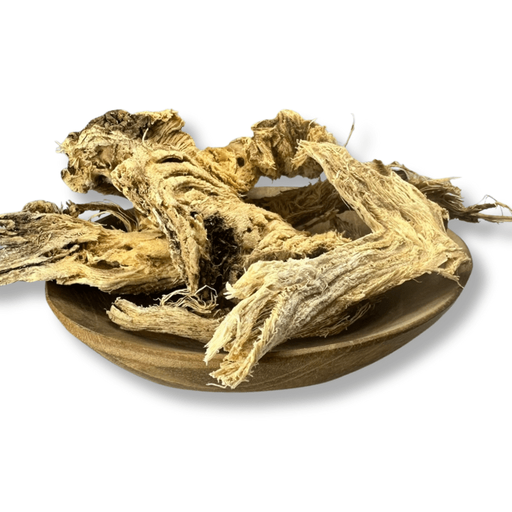 This variation is wildcrafted and carefully dried from the mountainous regions of China, then sliced for convenient use. Known for its striking purple berries and potent root, this herb has a long history of use in traditional herbal practices. Light brown, fibrous slices with a faint earthy aroma typical of wild harvested roots.