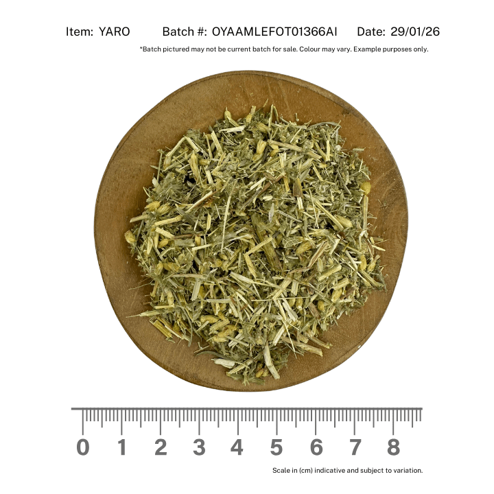 Yarrow has been known to support a sense of calm and well-being. Some say this remarkable plant helps promote a balanced lifestyle when included in food, beverage, or wellness products. Enjoy the mildly sweet, slightly peppery taste and the delightful, herbaceous aroma that yarrow brings. It harmonizes effortlessly with other ingredients, enhancing both flavour and fragrance. With a satisfying leaf texture, it blends seamlessly into your products, whether you're crafting teas, tinctures, or other wellness offerings.